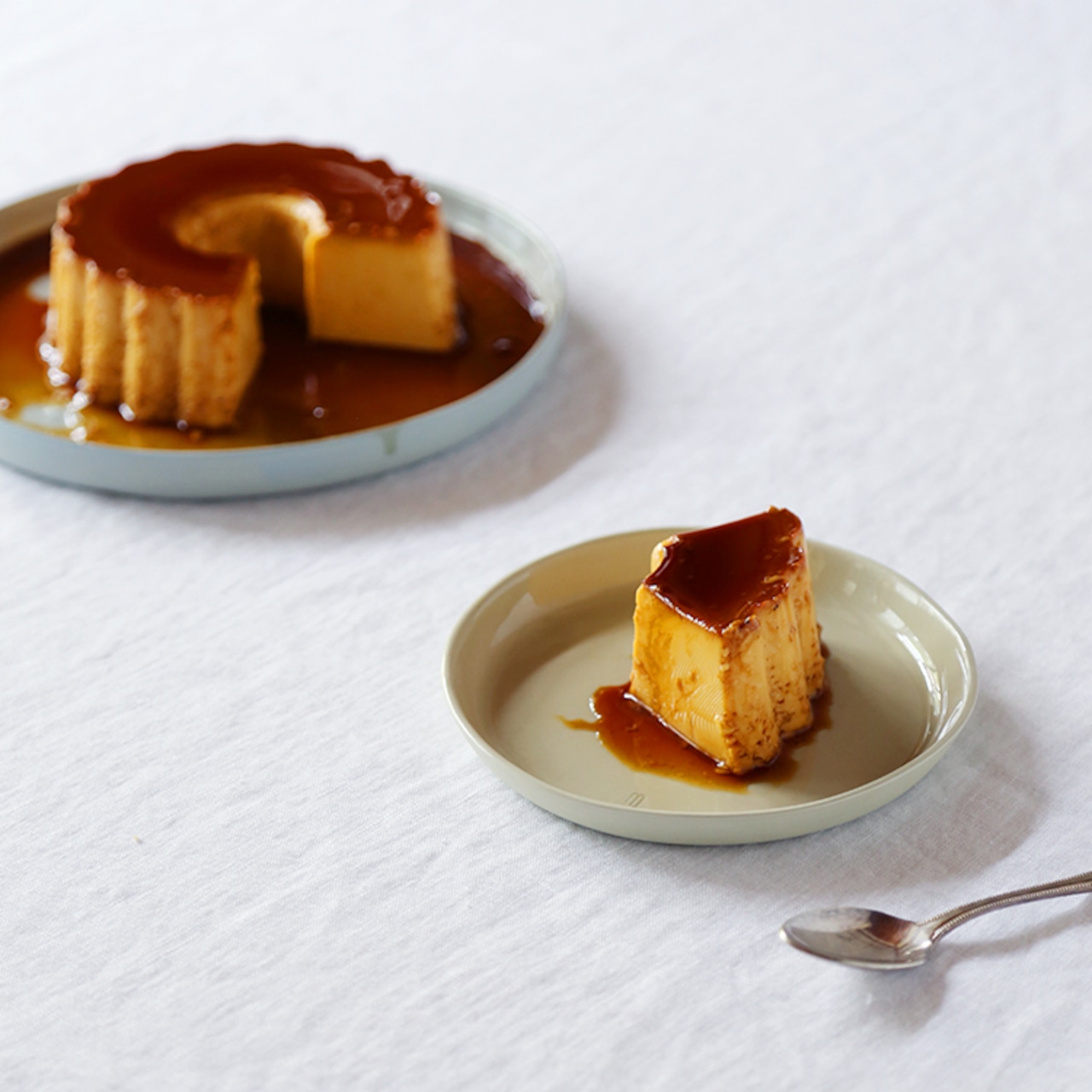 ポルトガルの家庭でつくられるデザートの定番プリン。CASTELLA NOTEがポルトガルで暮らしながら旅をして出会った味。しっかり卵感でかために大きくつくってカットして、食卓でみんなで分けて食べます。