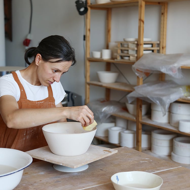 リスボンに工房を構えるマルガリーダ。大学でプロダクトデザインを勉強した後、オランダとデンマークでセラミックを学びました。彼女の作る器はシンプルでとても機能的。だけど無機質な印象はなく、とても明るく、ナチュラルです。マルガリーダは、作った器が日々の食卓で実用とされることを大切にします。